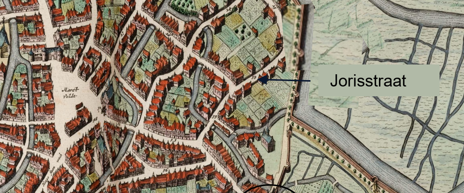 Het refugiehuis aan het begin van de Jorisstraat was het toevluchtsoord van de Geertrui abdij. Op nummer 25, na het huis van Bewaring, hadden de Kartuizers een vluchthuis. Zij woonden in het Kartuizerklooster te Vught maar omdat het te onveilig werd vertrokken ze naar dit huis in 1572. In 1629 moesten ze de stad verlaten en vestigden de Kartuizers zich uiteindelijk in 1641 in Antwerpen.