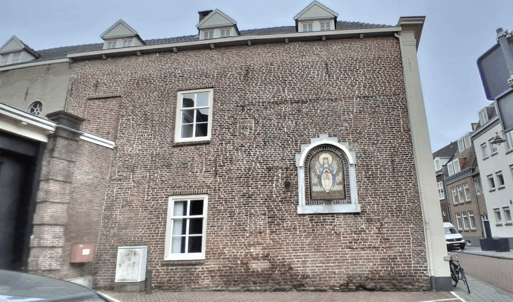 Ga nu het Kruisbroedersstraatje in totdat je aan de linker kant de waterweg ziet lopen. Druk dan op de onderstaamde knop.