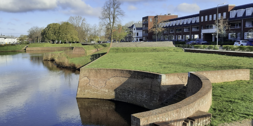 Loop nu onder de brug door en ga dan direct weer naar boven. Steek de brug weer over en ga richting de Watertoren. Loop langs de toren (die dan aan de rechter hand ligt) op de huizen aan en ga dan links en dan weer rechts de Oostwal op. Loop door tot aan de brug over de Zuid Willemsvaart en ga die over. Neem de overgangersoevrsteek en ga dan weer links de oversteek over. Je loopt dan richting het park en neem de weg waarbij je het park aan de rechter hand hebt liggen. Loop door totdat je de trappen op kan van het cortenstalen bouwwerk om over de wal te gaan lopen. Open dan de info via de onderstaande knop.ย